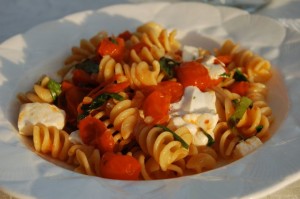 1 pound “gnocchi” like pasta (or any small pasta) 2 tablespoons butter 1 tablespoon olive oil 1/2 sweet onion, chopped 4 garlic cloves, minced 1 bag frozen peas, thawed 1/4 pound sliced proscuitto, cut in strips 1/4 cup grated parmesan 1/8 cup fresh parsley, minced In a pot of boiling salted water, add the pasta…