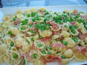 Pasta with proscuitto and peas