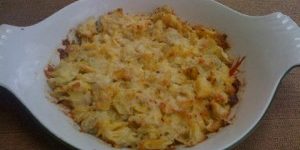 - Ok, this is so easy to entertain with when people pop by! In a shallow baking dish (you will serve it in the same dish you bake in!) mix together all ingredients until the artichokes are covered. In a preheated 350*F oven bake for 15-20 minutes until bubbly and slightly golden on the top. If you want to double recipe, which I would because this goes fast, bake it for 25-30 minutes. Serve with crackers and enjoy!!!