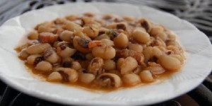 - Down here in the South, there’s nothing better than some good luck black eyed peas on New Year’s Day! So this is my tasty version. The first thing you’re gonna want to do is preheat your pan to medium high heat. Add your diced pancetta and let cook until a pale golden brown, about 3-5 minutes. Once the pancetta is ready add your onions and let cook until they start to get translucent, another 5 minutes. You want to make sure to really scrape the bottom of the pan and get all those goodies up at the bottom! After that add the minced garlic and the diced jalapeno. Let cook for another minute and add the black eyed peas. You want to make sure that they aren’t the dried ones and if they are, just make sure you soak them overnight! To the black eyed peas add the can of diced tomato, beef broth, and bay leaf. Turn the heat to a medium low and let simmer for 30 minutes. Check it every once in a while and if you see the liquid is low add some more. Don’t worry… it can be water! After 30 minutes make sure you season it with salt and pepper and you’re ready to go! Goodluck food for the New Year!! Hope you like it 😉